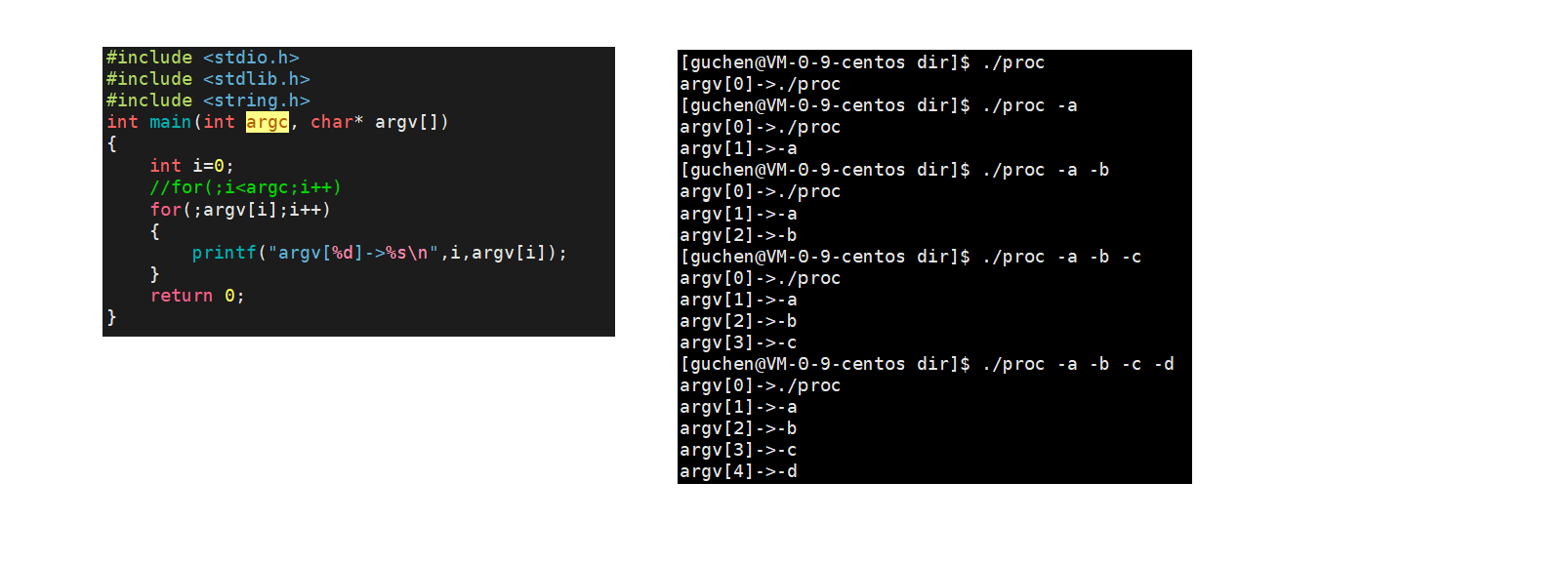 两种核心向量表,argv命令行参数表,env环境变量表