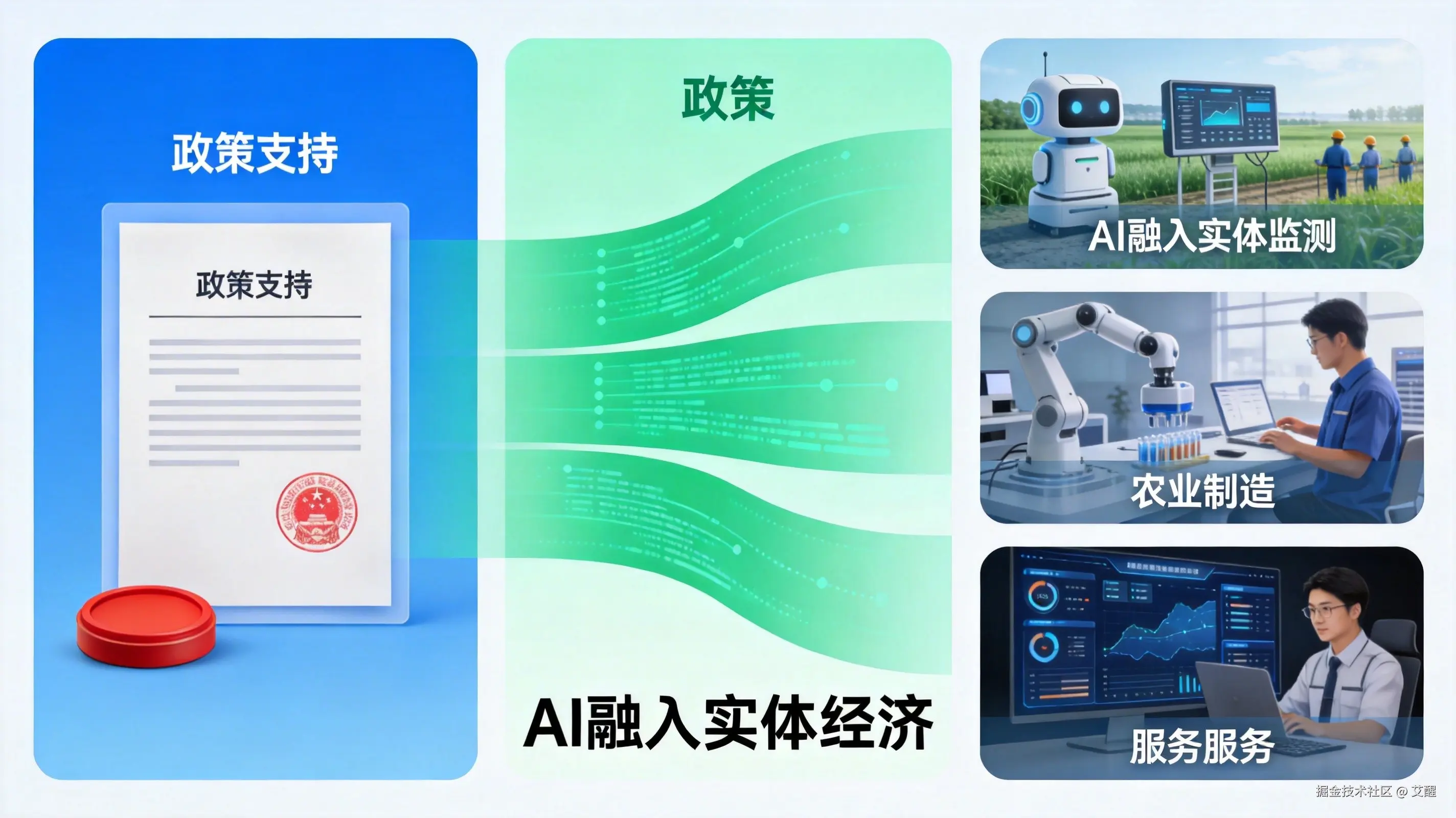 五、政策与产业:AI全面融入实体经济,企业强制AI化提速