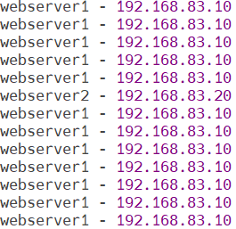 发现出现了webserver2的名字和ip,说明第一个 shell 的长连接持续占用 webserver1 的maxconn=1,导致第二个 shell 只能走 webserver2,这就体现了first 算法只认 "顺序 + maxconn 上限",优先占满第一个服务器再用第二个