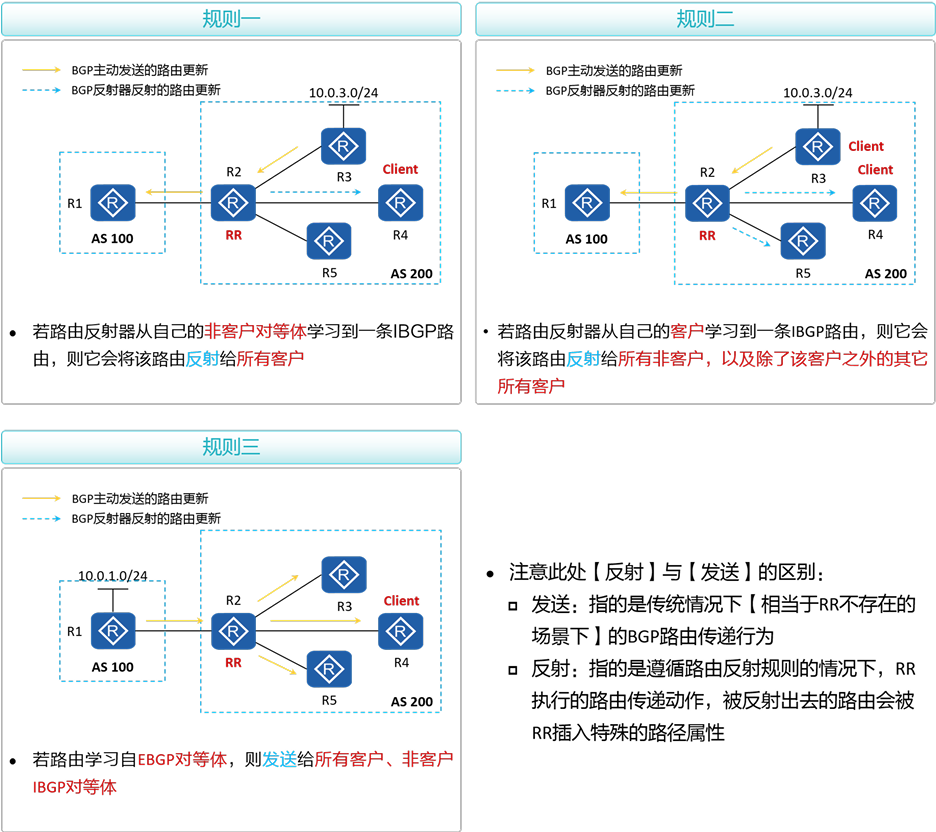 (路由反射规则简单总结为"非非不传" ,即非客户端与非客户端之间不进行路由传递)