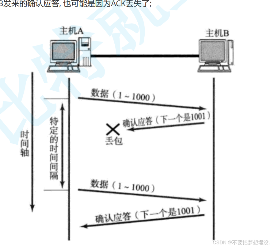 但是, 主机A未收到B发来的确认应答, 也可能是因为ACK丢失了