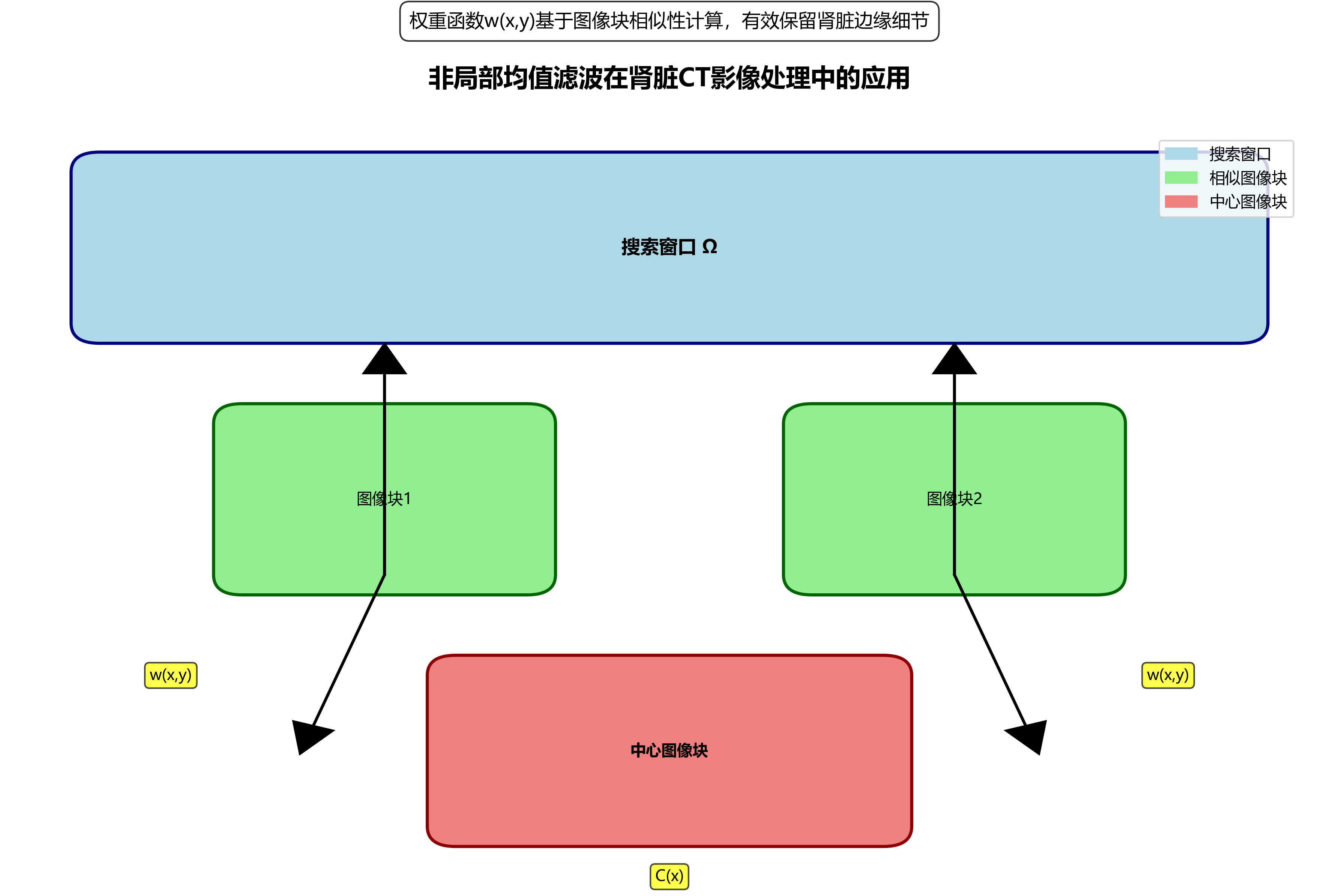 其中,w(x,y)为权重函数,C(x)为归一化常数,Ω为搜索窗口。权重函数通常基于图像块之间的相似性计算。在肾脏CT影像处理中,非局部均值滤波能有效保留肾脏边缘细节的同时去除噪声,为后续的病变检测提供更清晰的图像基础。特别是对于肾囊肿这种边界清晰的病变,适当的去噪处理可以增强其边缘特征,提高检测准确性。