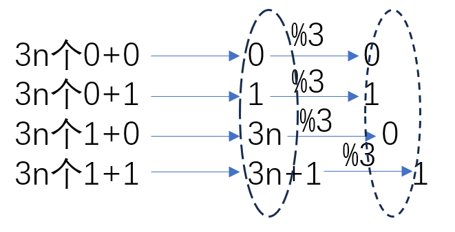对于二进制表示的每一位,如果将数组所有元素相加起来,有且仅有4种情况: