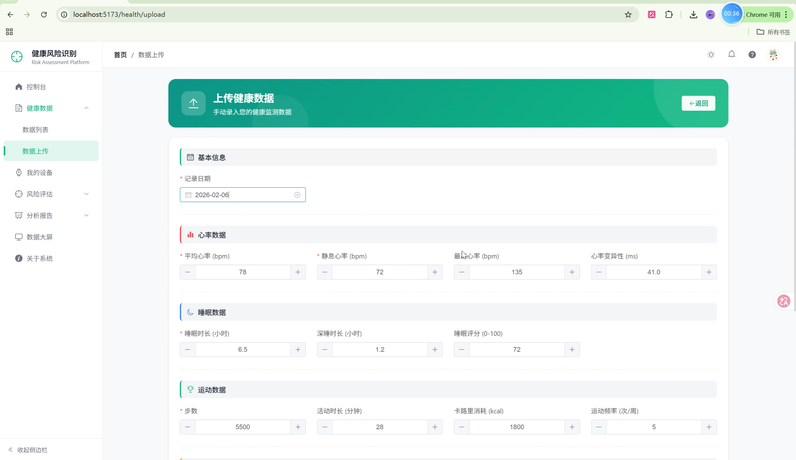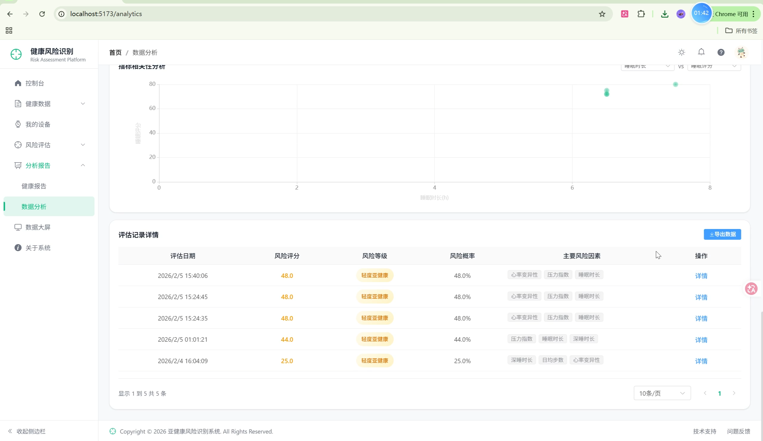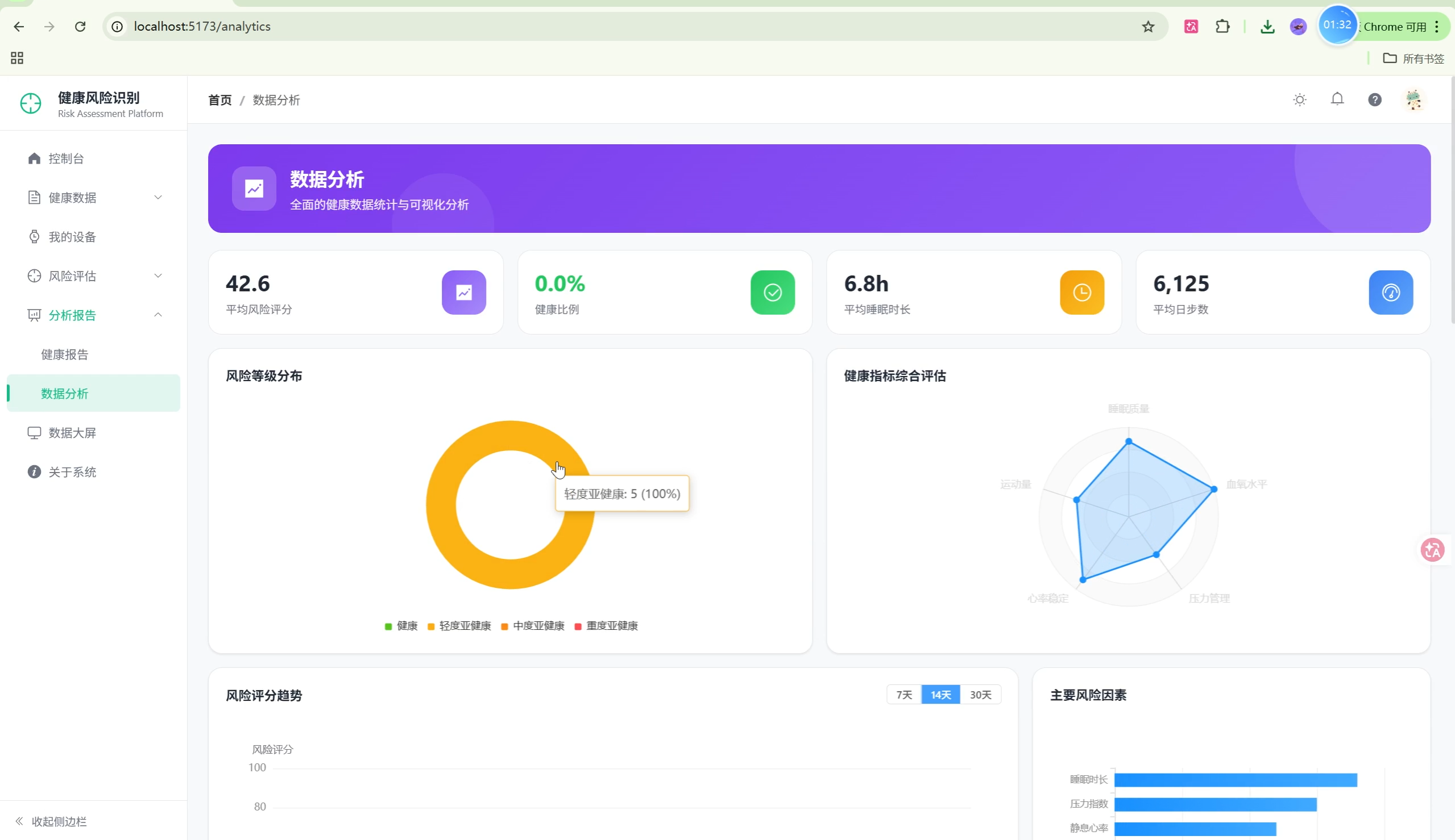 随着可穿戴设备的普及,人们可以方便地采集心率、睡眠、运动等健康数据。本系统利用机器学习技术,对这些数据进行分析,识别用户的亚健康风险,并通过SHAP可解释性技术让用户理解影响健康的关键因素。