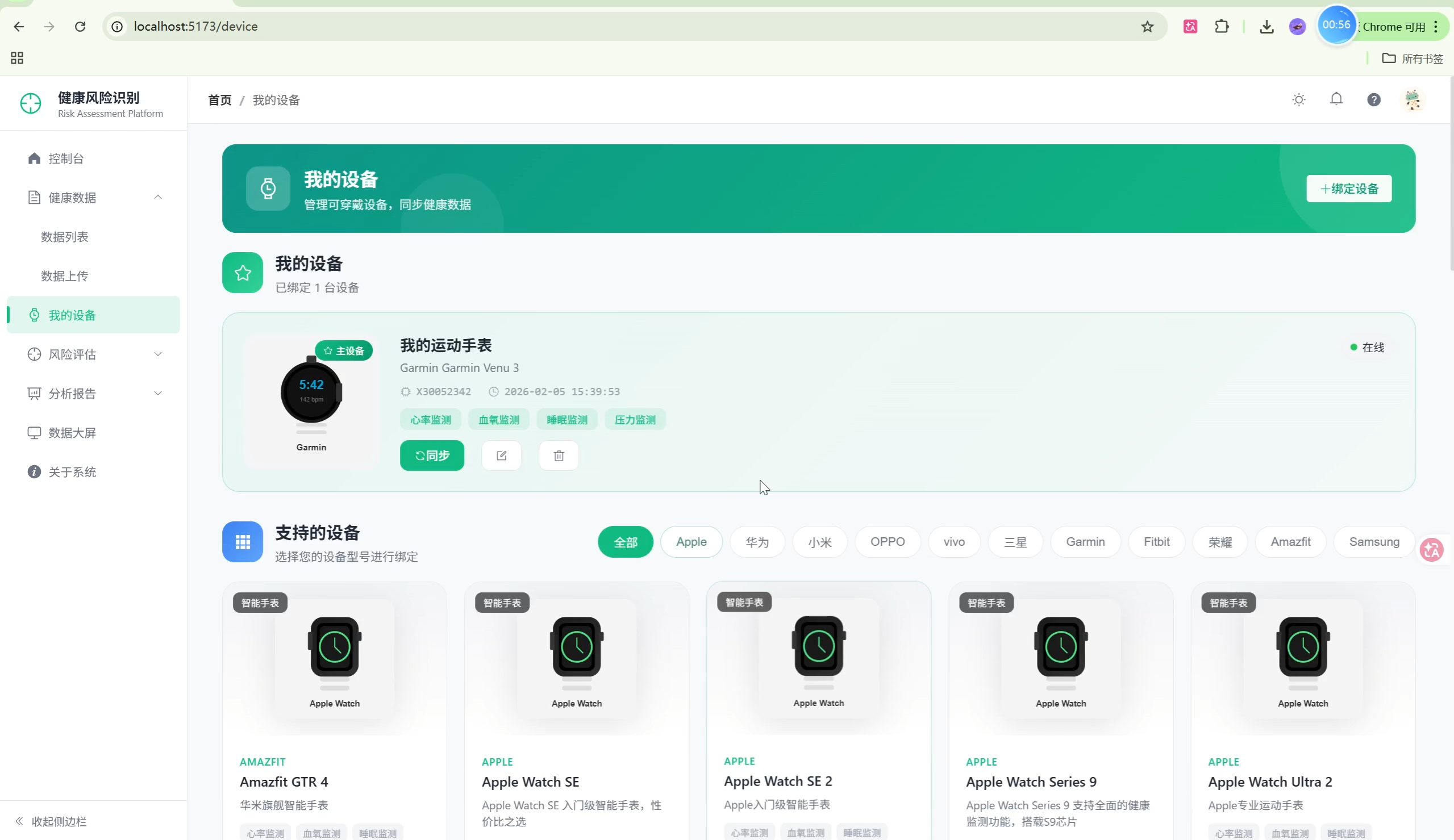 - 收集和管理用户的可穿戴设备健康数据