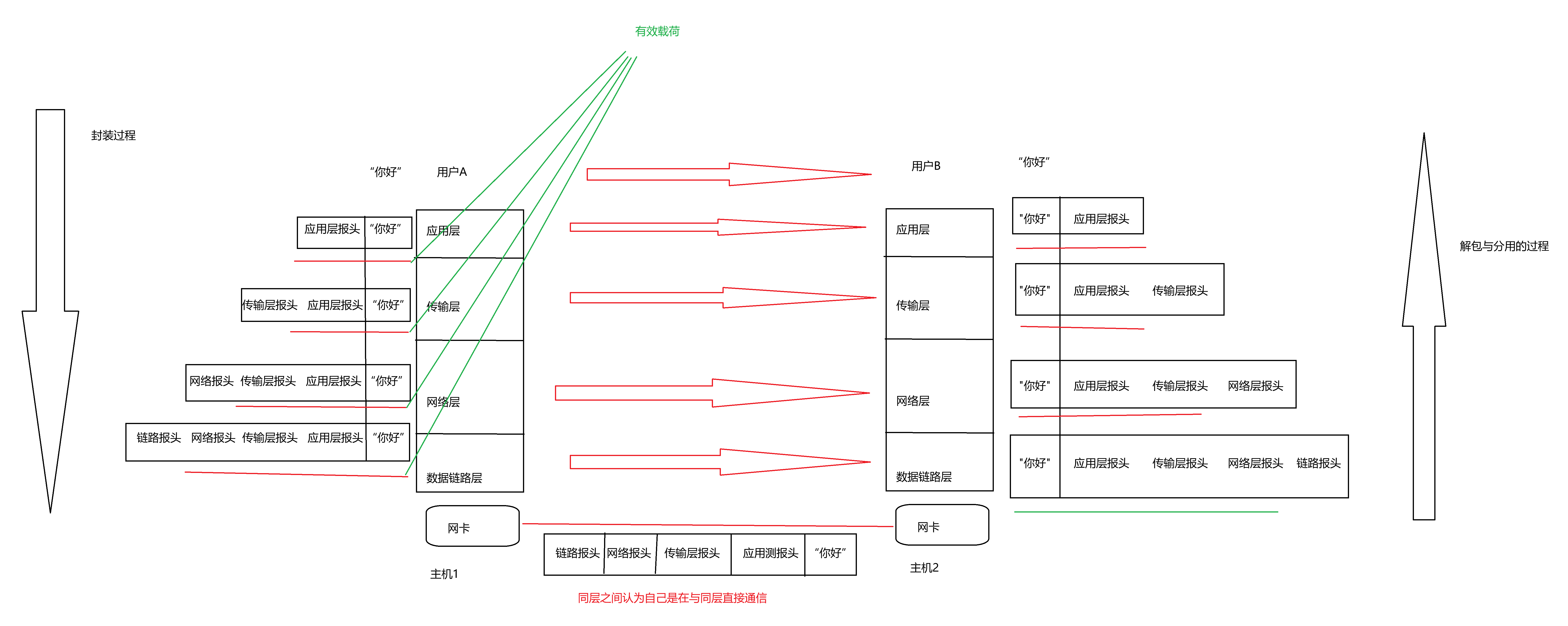 协议分层,就是把网络通信这个复杂的任务,按照功能的不同,切割成若干个相互独立、又相互关联的层级。每个层级只负责通信过程中的某一个特定环节。上层依赖下层提供的服务,下层为上层提供支持,但上下层之间互不干扰。