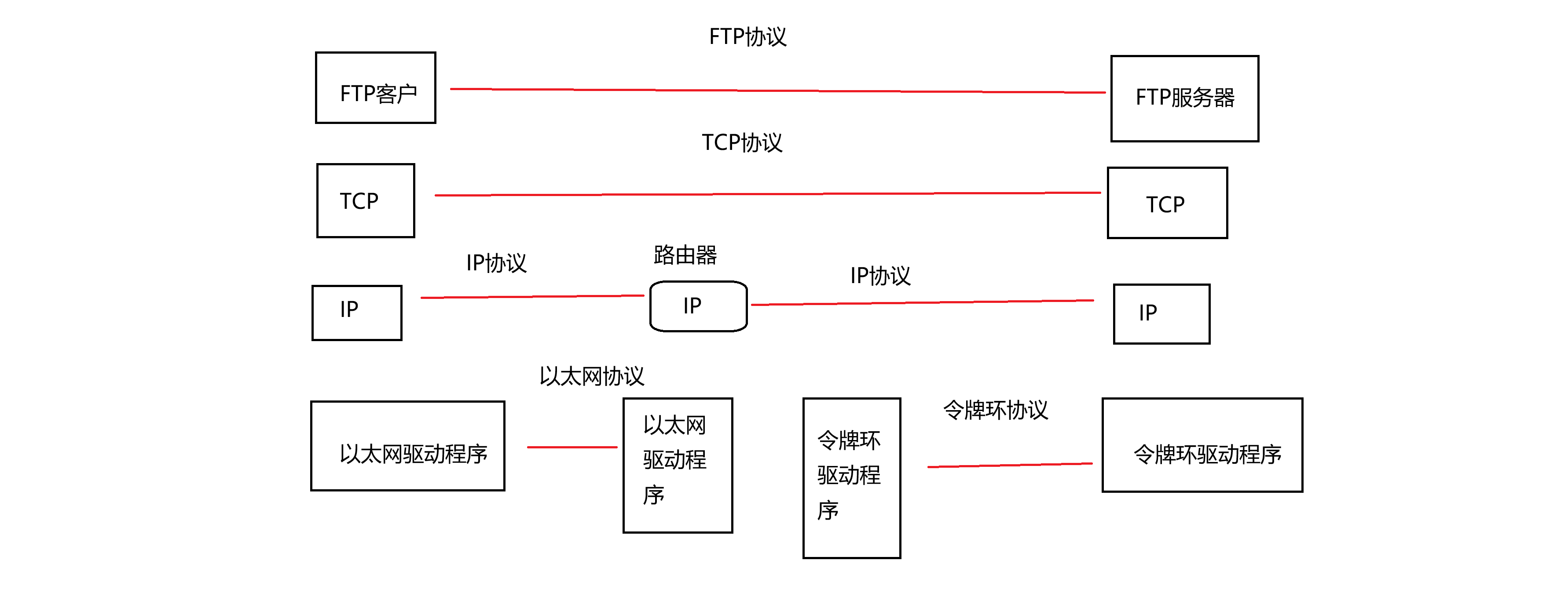 微软的浏览器(应用层)可以访问苹果服务器上的网页(应用层),只要他们都遵守HTTP协议。