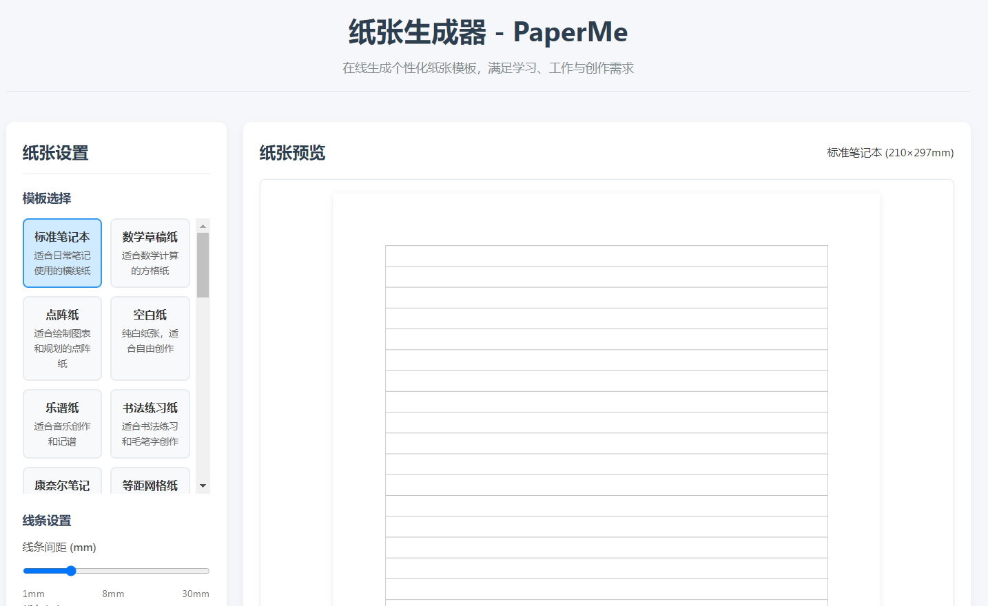 这个工具完全在浏览器中运行,不需要任何服务器支持,可以直接保存为HTML文件离线使用。所有模板设置都基于用户提供的"纸由我"模板库参数,确保专业性和实用性。