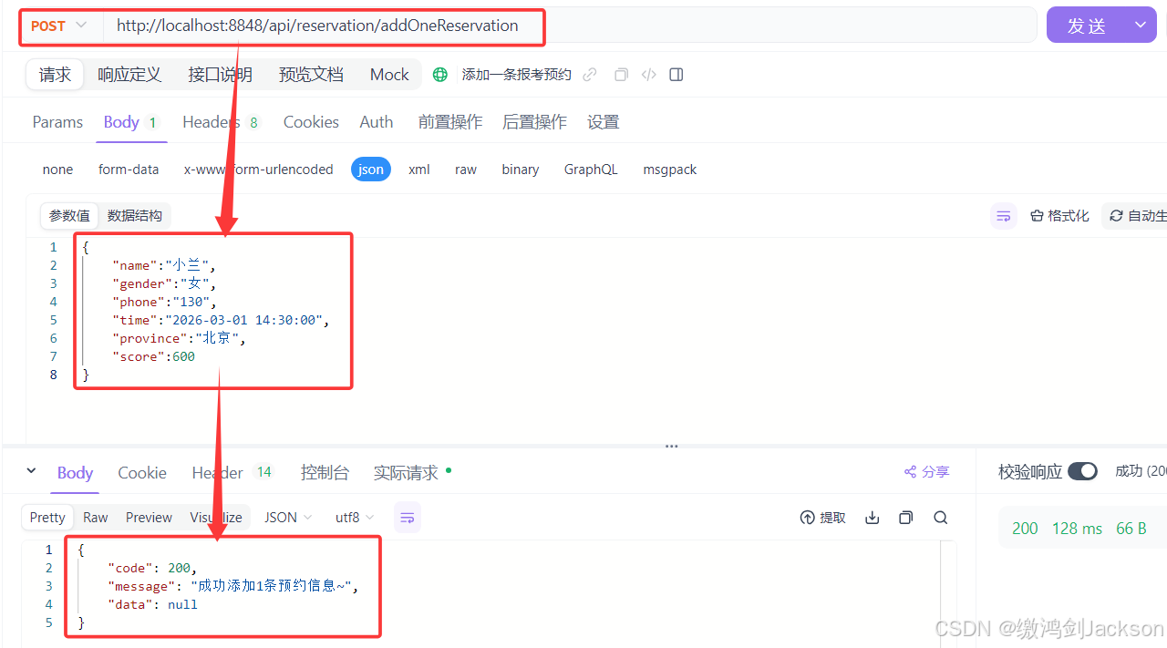 接口1:添加一条报考服务