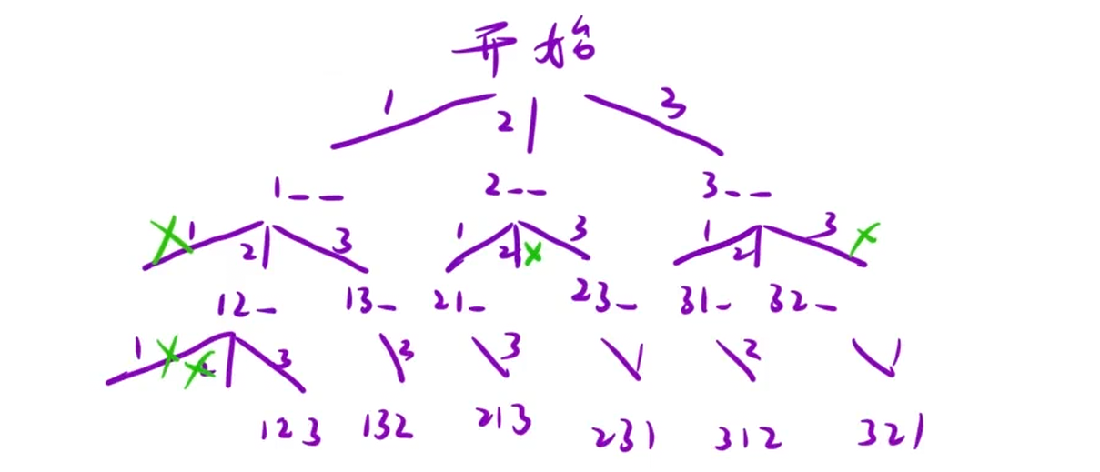 **为什么不需要标记数组表示当前值有没有被选过:**全排列那道题需要标记数组表示当前值有没有被选过,选过就不能选了,那是因为那道题是针对一组元素进行排列,如下图: