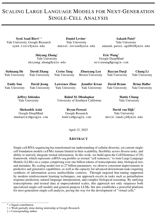- Google Research 博客:https://research.google/blog/teaching-machines-the-language-of-biology-scaling-large-language-models-for-next-generation-single-cell-analysis/