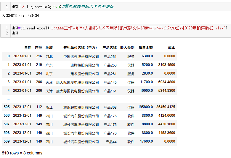 df3=pd.read_excel('E:\AAA工作\授课\大数据技术应用基础\代码文件和素材文件\ch7\MG公司2023年销售数据.xlsx')