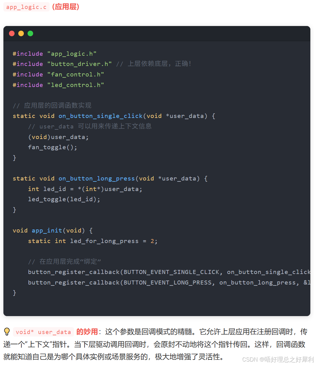 应用层,注册回调函数:有个精华地方,注册函数可以回参数。