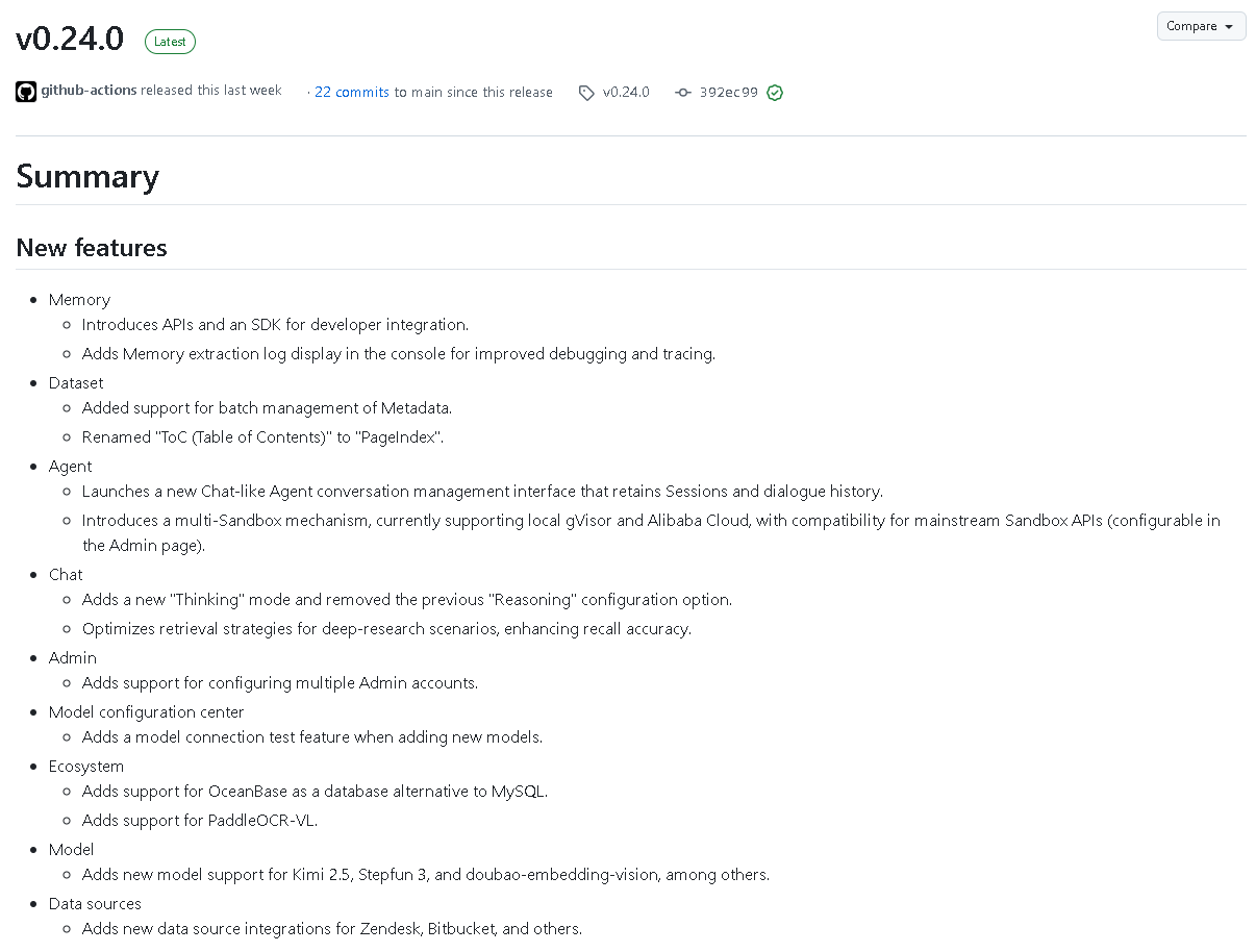 本文将带你系统梳理 RAGFlow v0.24.0 的所有新增功能、优化亮点和修复更新,让你全面掌握这一版本的核心变化。