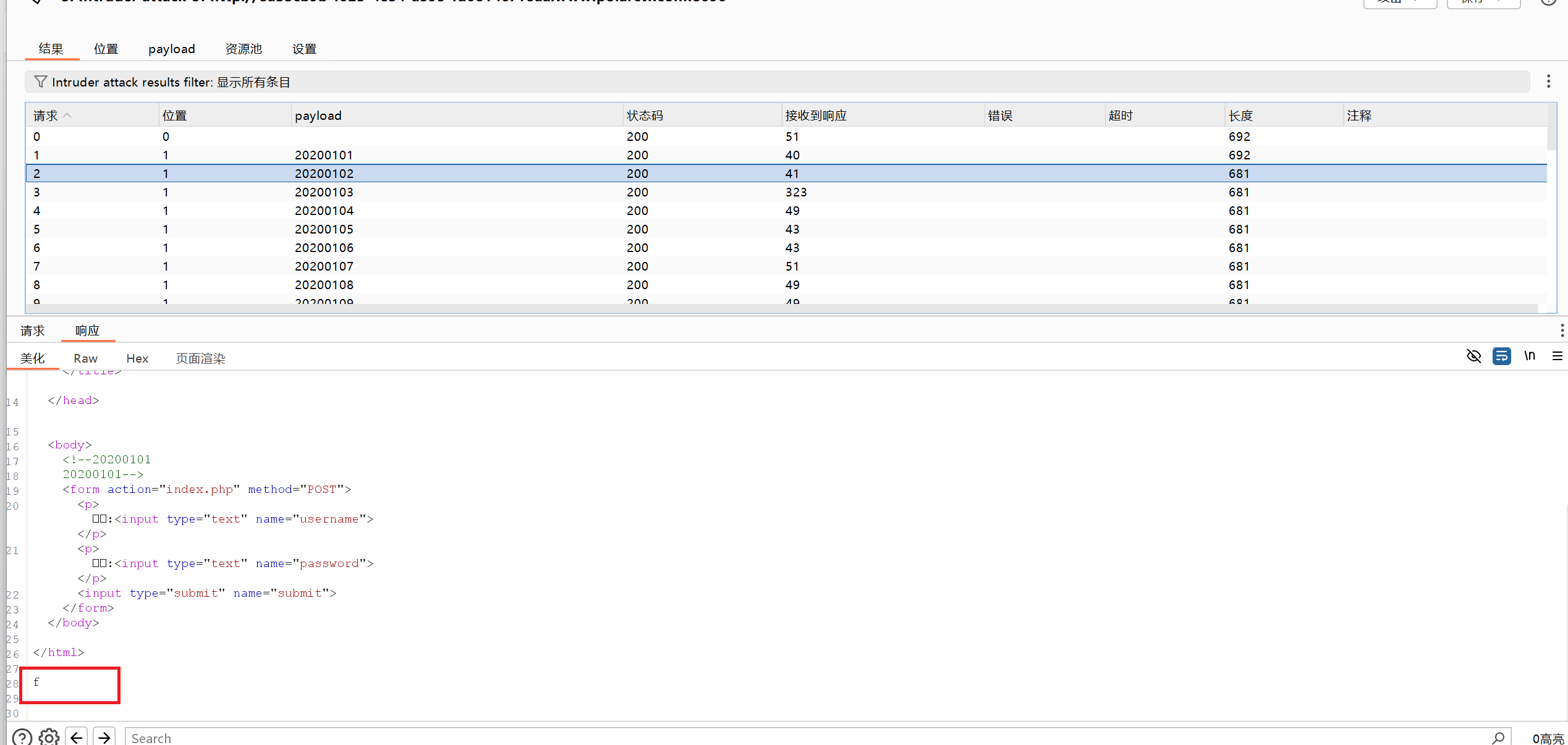尝试去攻击,且学号不断向后递增就会发现从2开始每个学号对应的请求会有flag的一部分