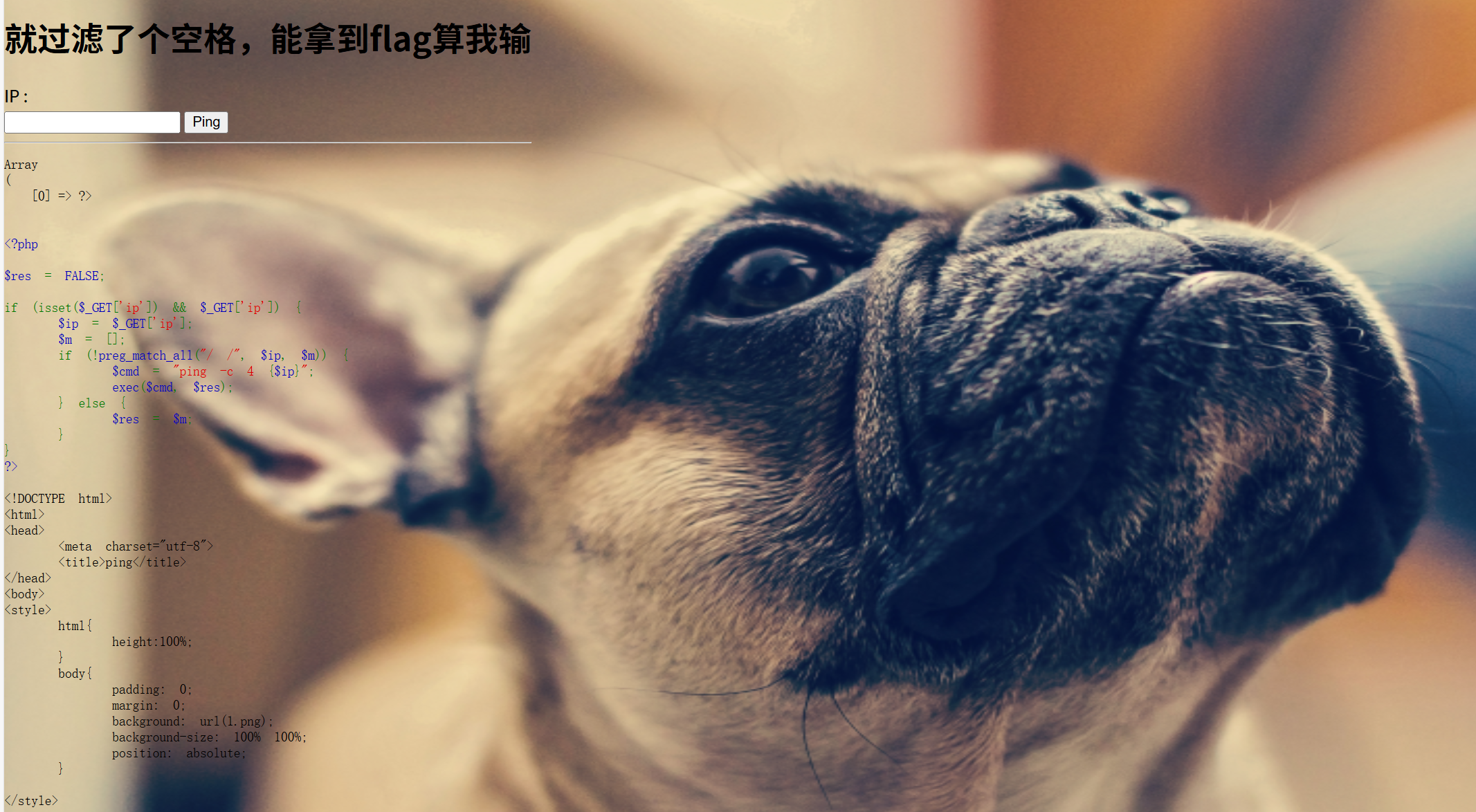 get传入ip参数,通过正则表达式过滤空格,没有空格才会继续执行执行 ping -c 4 {$ip}命令
