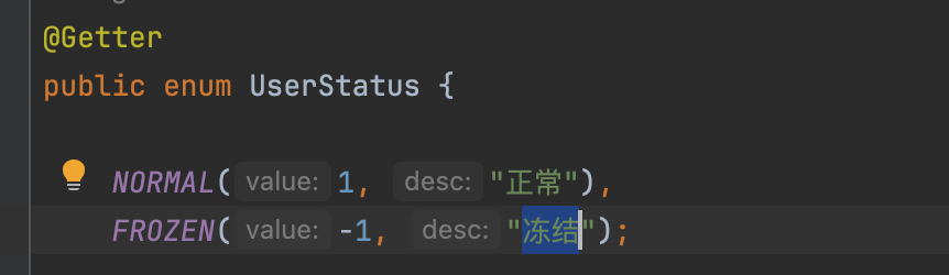 FROZEN(-1, "冻结"); // ordinal=1,code=0