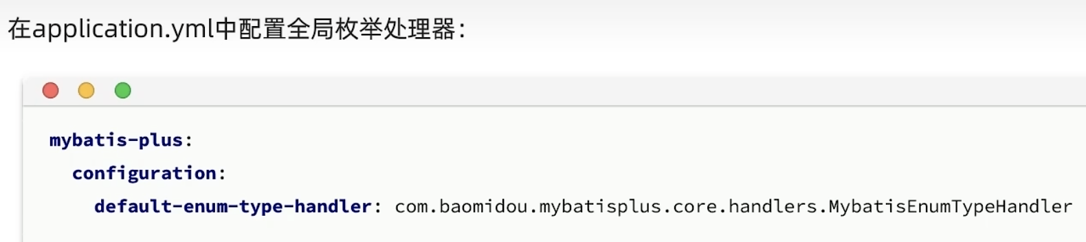 1、通过注解@EnumValue,告诉mp,枚举中的哪一个字段作为数据库中的存值