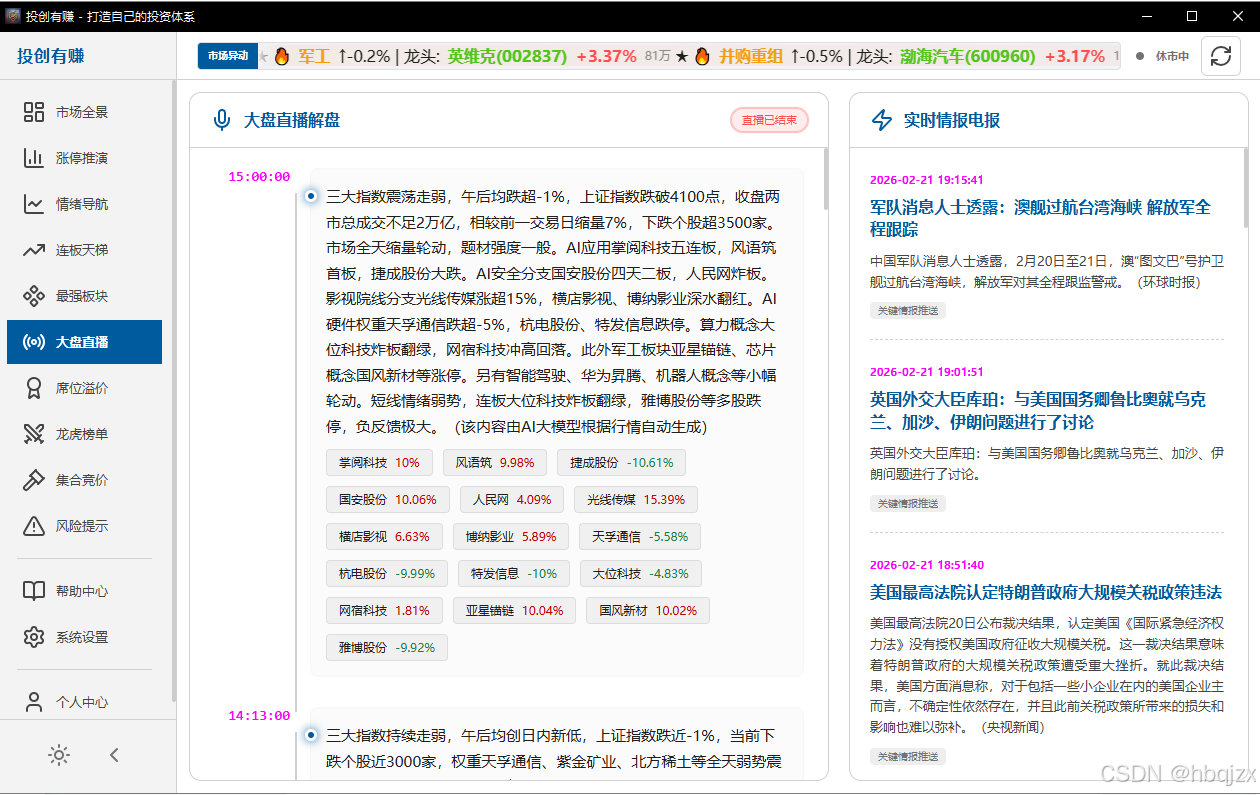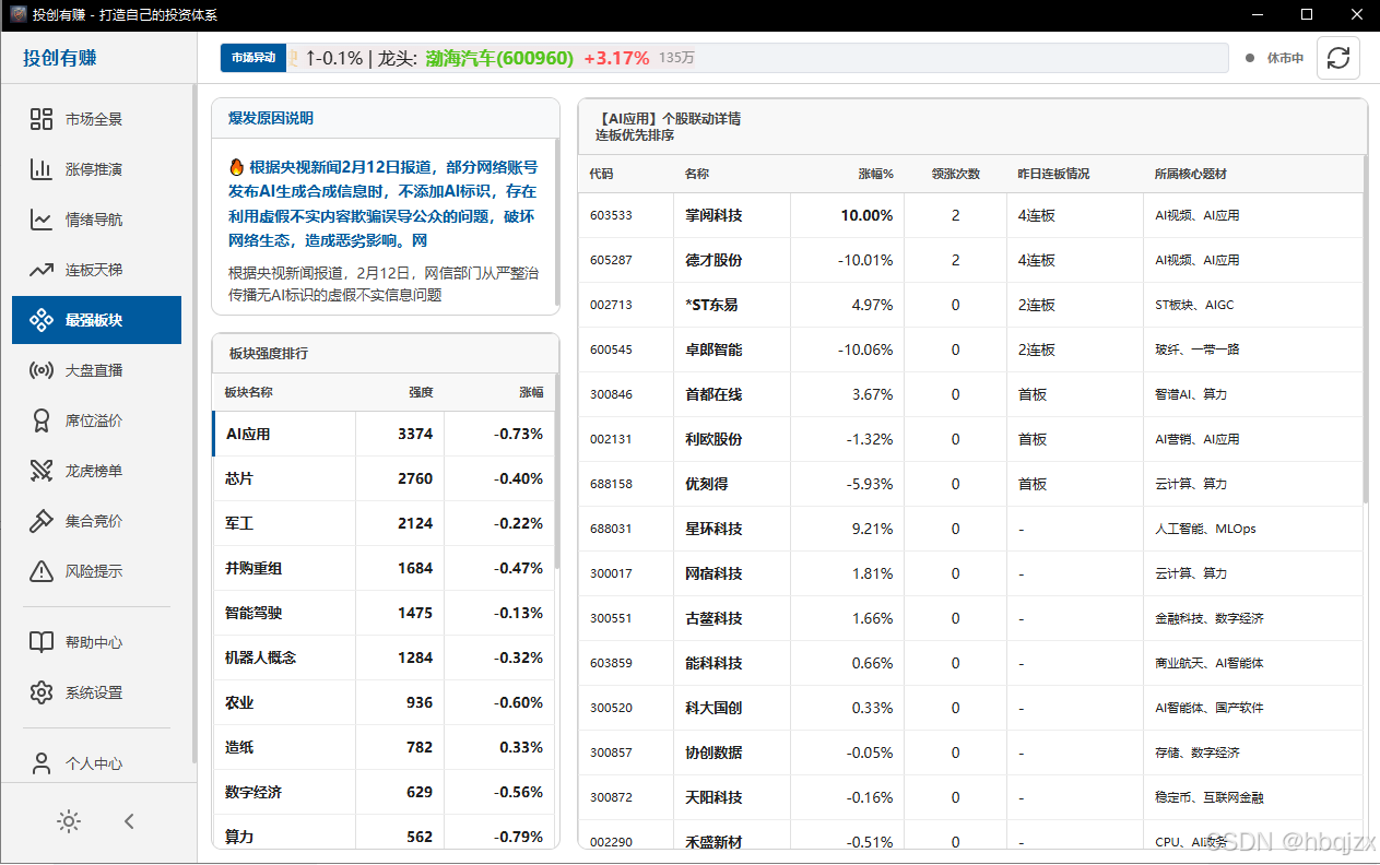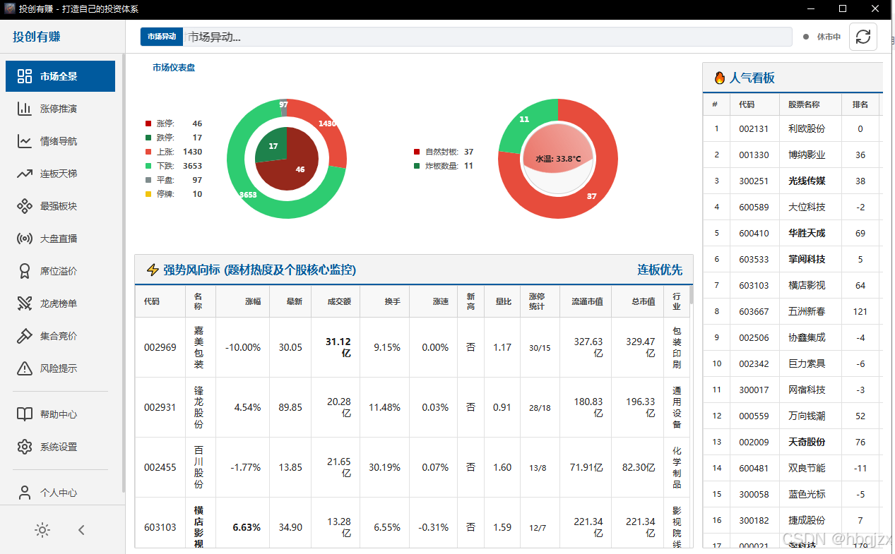 市场全景,涨停推演,情绪导航,连板天梯,最强板块