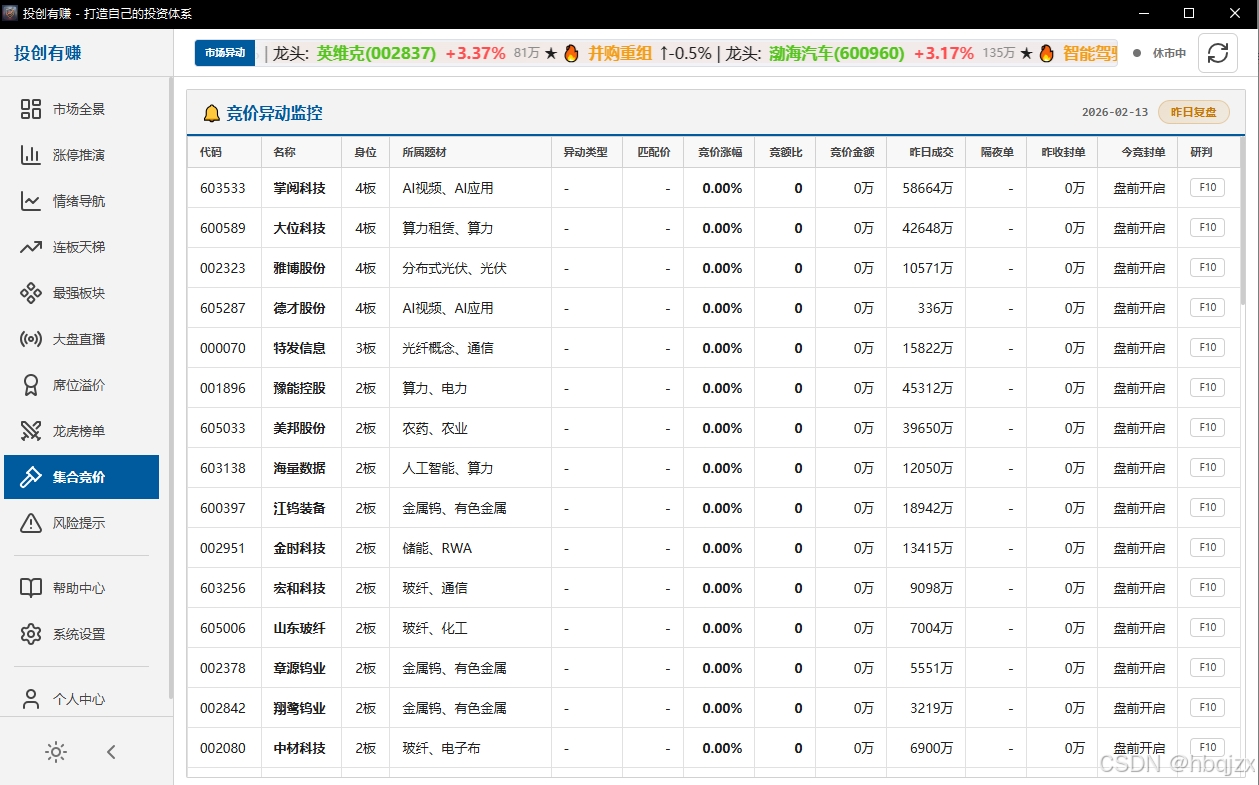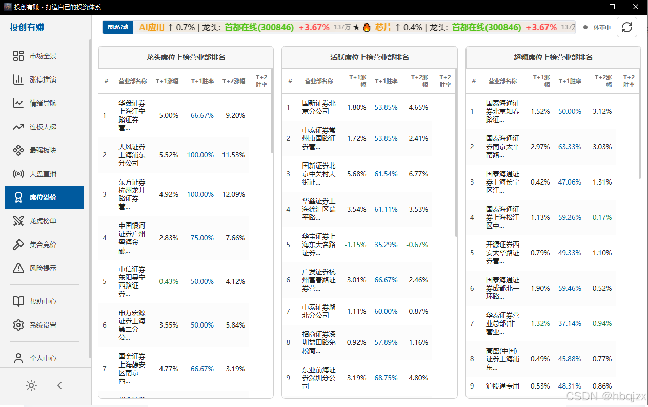 大盘直播,席位溢价,龙虎榜单,集合竞价,风险提示