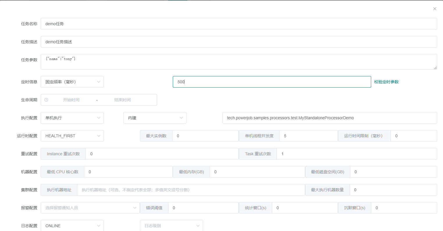 - 任务参数:任务处理时能够获取到的参数(即各个 Processor 的 process 方法入参 TaskContext 对象的jobParams 属性)(进行一次处理器开发就能理解了)