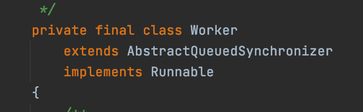 Worker 继承了 AQS,也就是具有一定锁的特性。