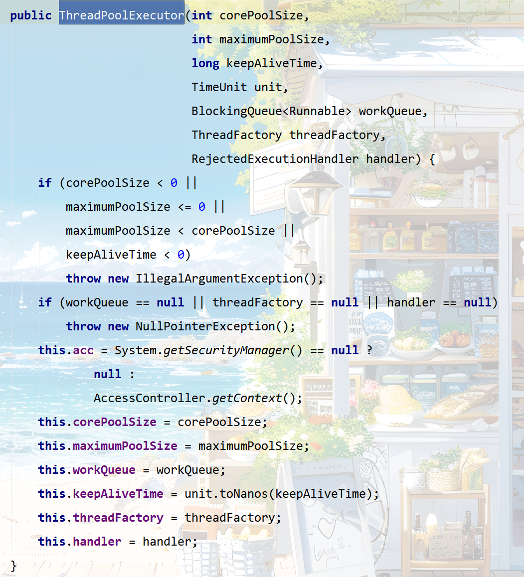 Java 主要是通过构建 ThreadPoolExecutor 来创建线程池的。接下来看一下线程池是如何构造出来的