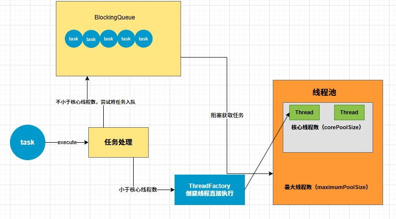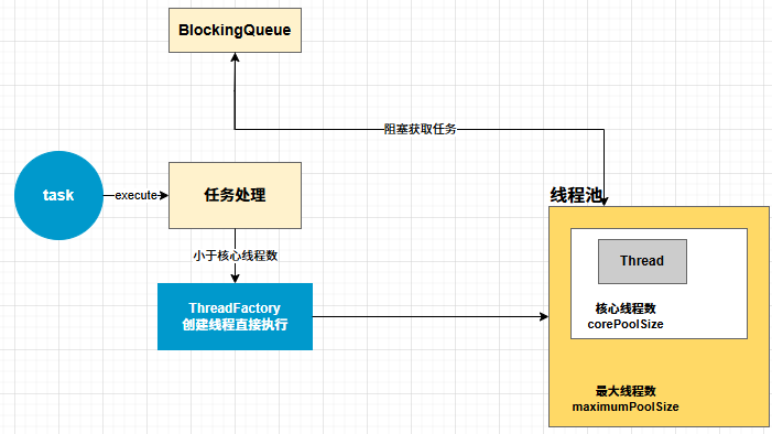 如果小于,那么就直接通过 ThreadFactory 创建一个线程来执行这个任务,如图