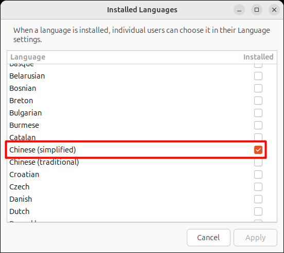 确保选中了"简体中文":