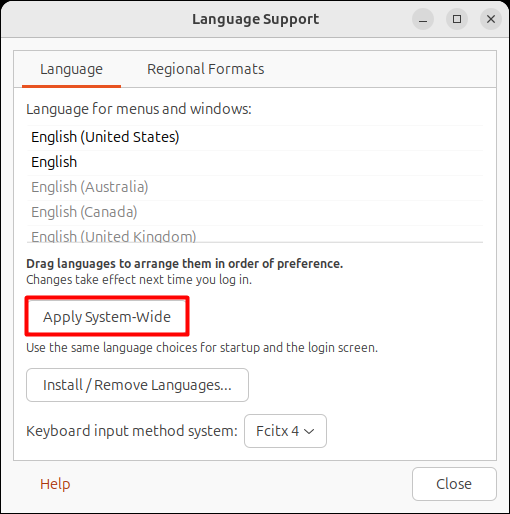 在"键盘输入法系统",选择 Fcitx4 。