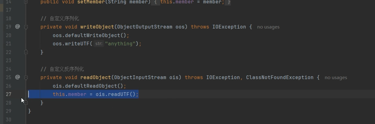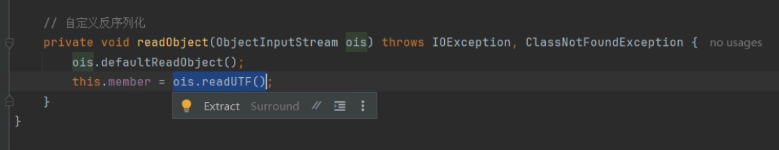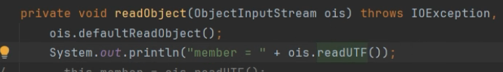this.member = ois.readUTF(); // 2. 然后读取那个额外的字符串,并赋值给 member