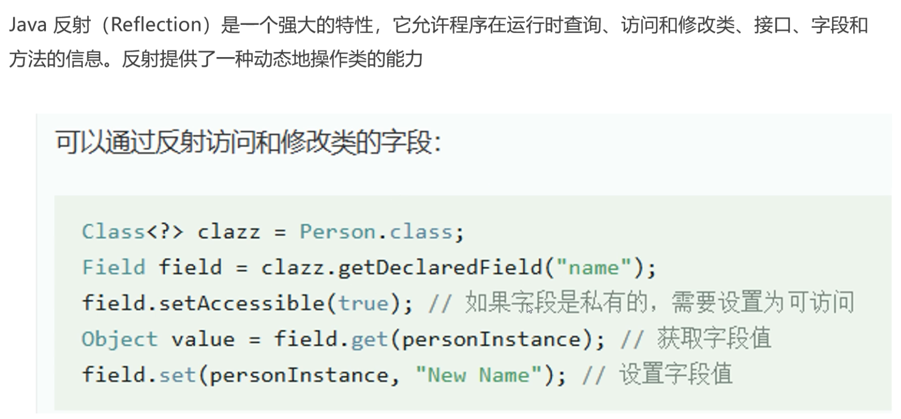 // 默认情况下,Java 是不允许直接碰私有属性的,使用setAccessible(true); 便可获得权限