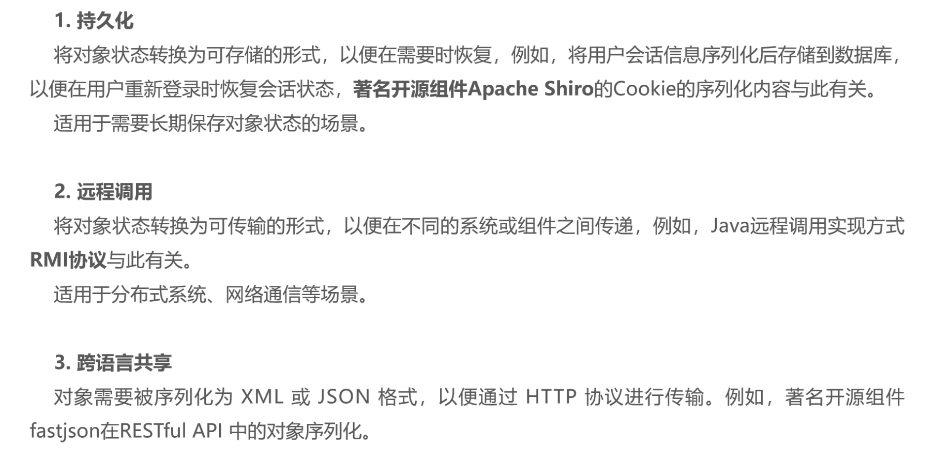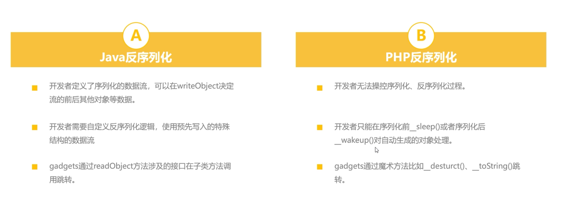 第三方开发的工具都可以对序列化进行处理,但是在php不会所有的类都含有魔术方法,所以java更多是对框架类 有可以利用的点
