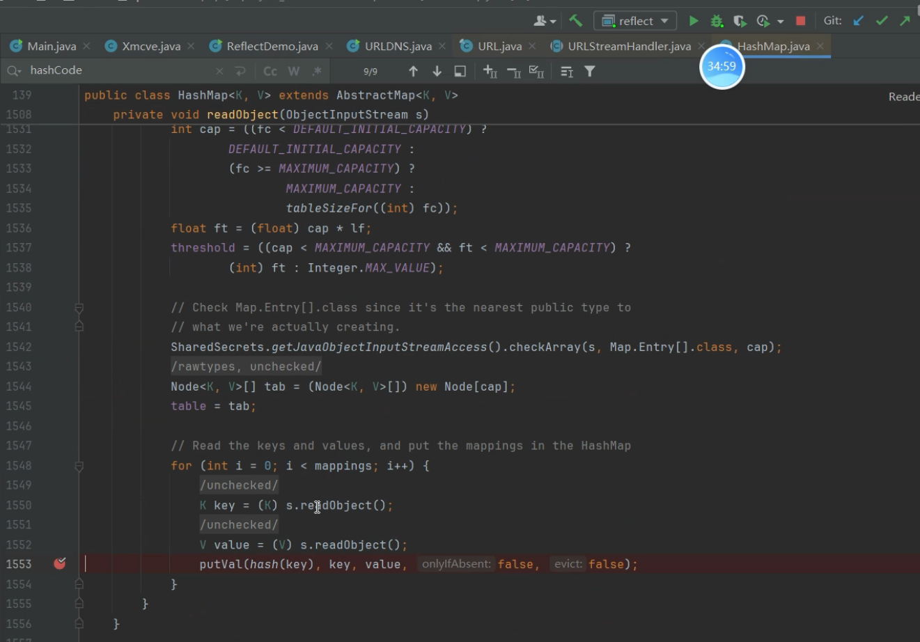 - JVM 调用: HashMap.readObject() ← 这里开始!