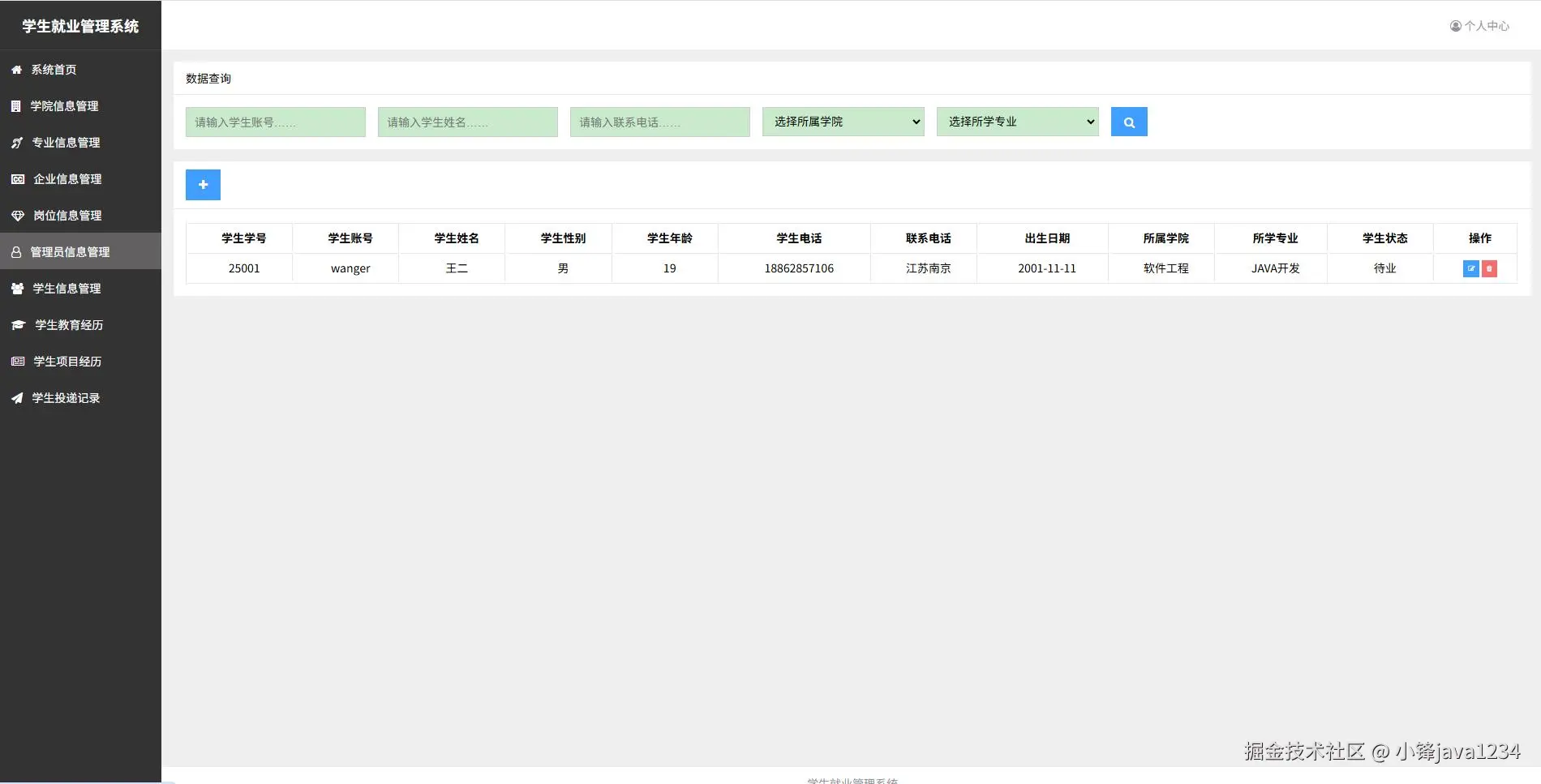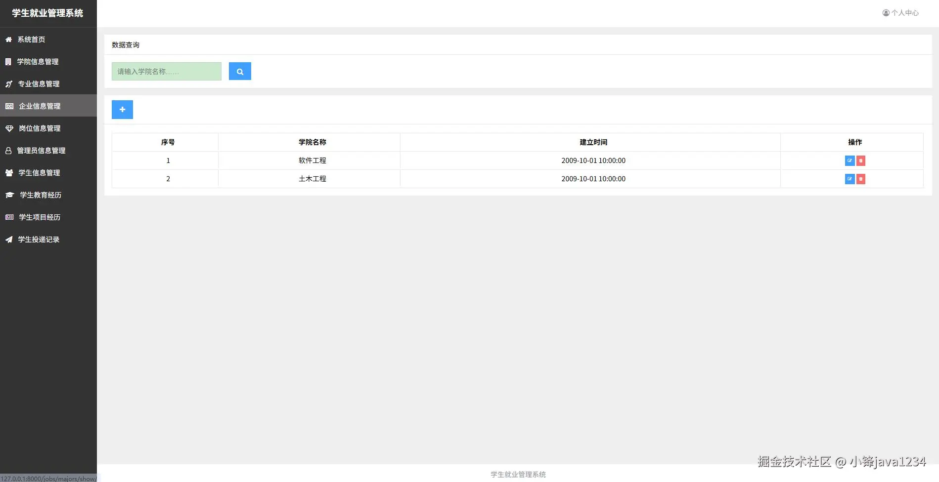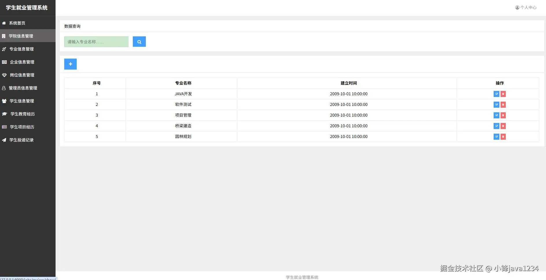 随着近年来高校毕业人数的增多,学生毕业之后就业情况如何,哪些学科就业率较高,哪些领域招收人数较大......等等一系列的问题不仅仅是学生关心的问题,同时也是高校开始关注这些问题,在这种情况下,某高校想要开发一套学生就业管理系统,方便了解学生就业信息,提升教学质量。