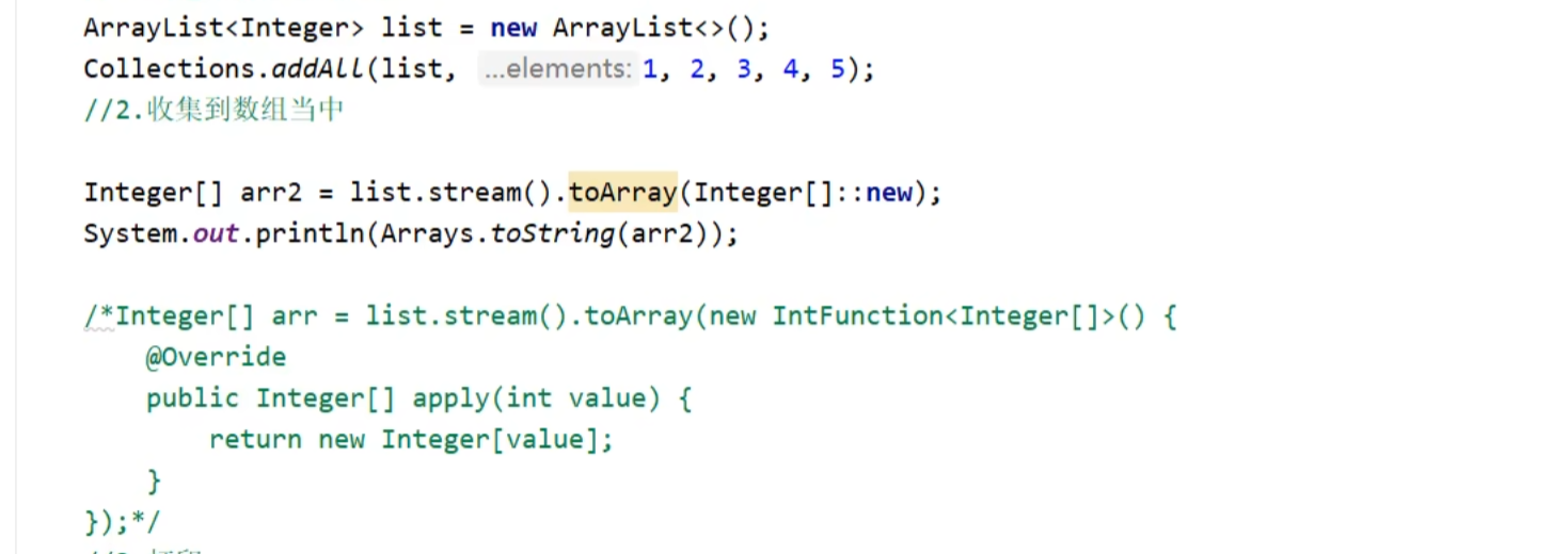 其中collect()括号中的collectors.tolist是collect中的一个静态方法,在底层生成一个list或者set集合用于储存