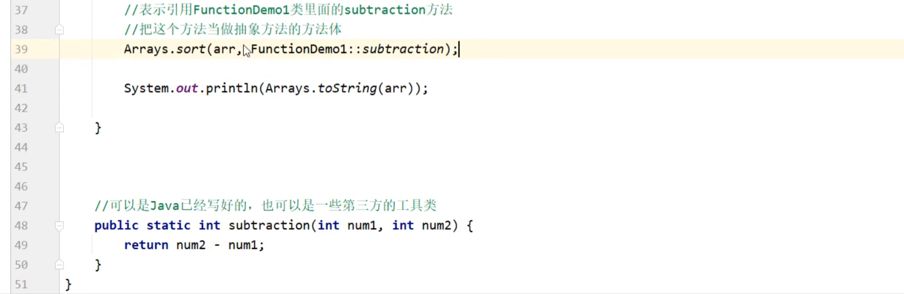 记住倒数第二行的Lambda表达式就行了,绿色的是匿名内部类的,比较麻烦