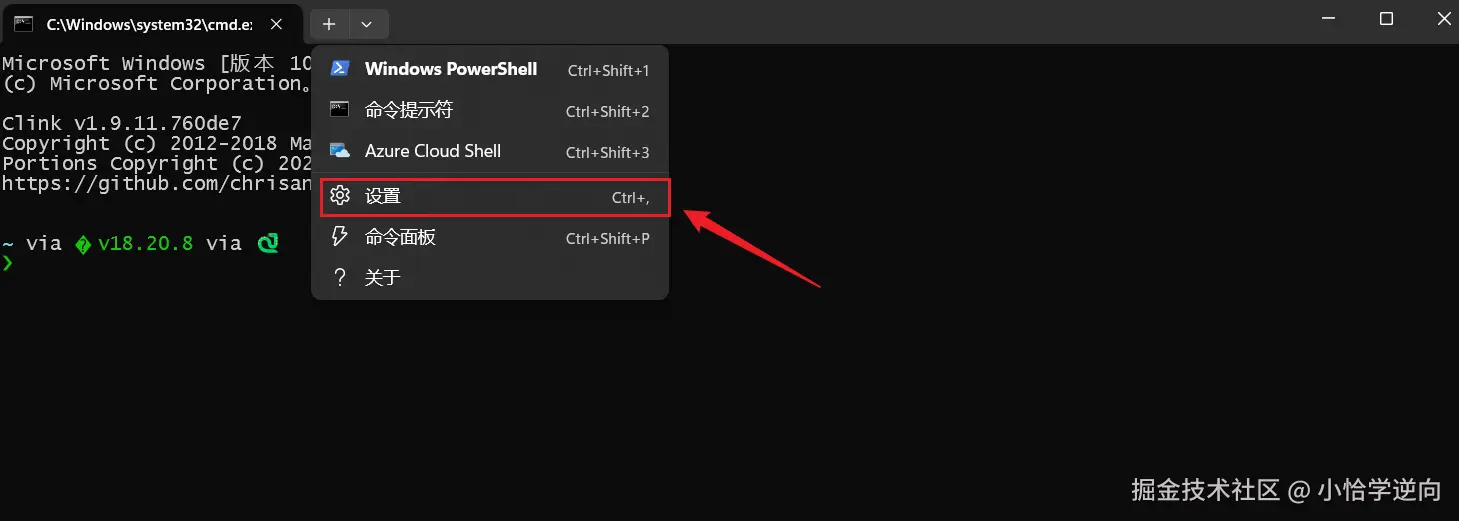 安装好了之后,在cmd终端找到设置选项(win11为例)