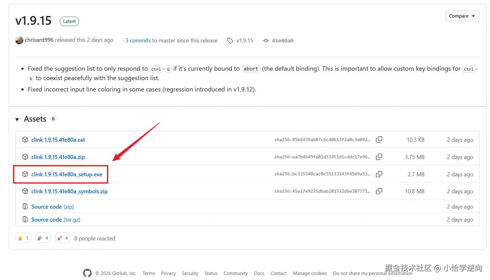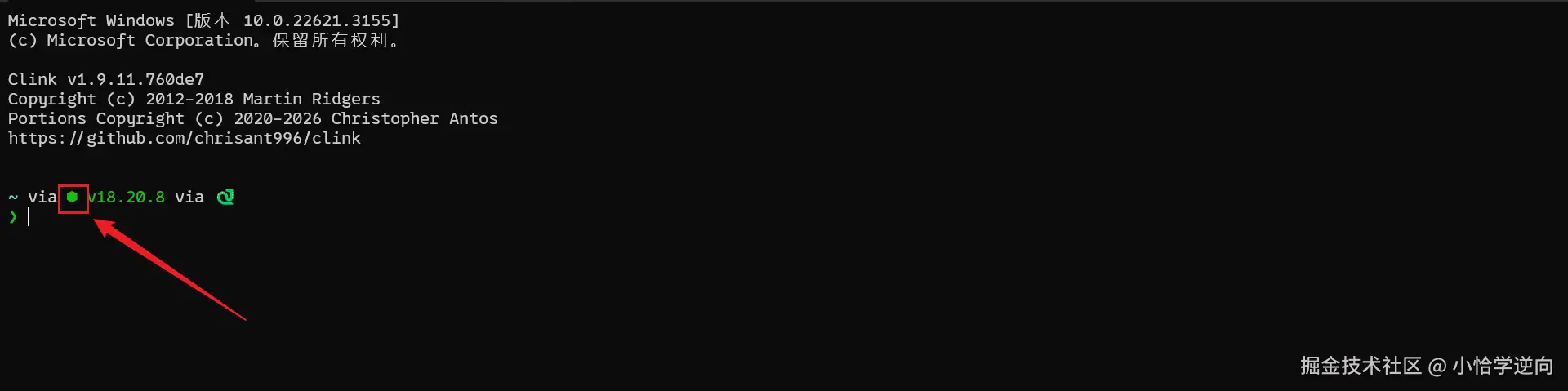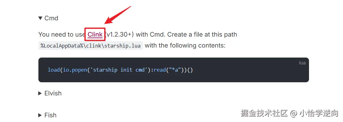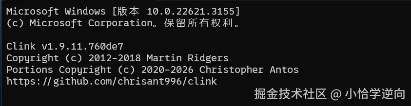 在这里,它提示我们如果要在cmd使用这个软件的话,需要安装一个叫Clink的软件,我们点进去下载就行了,下载地址:github.com/chrisant996...