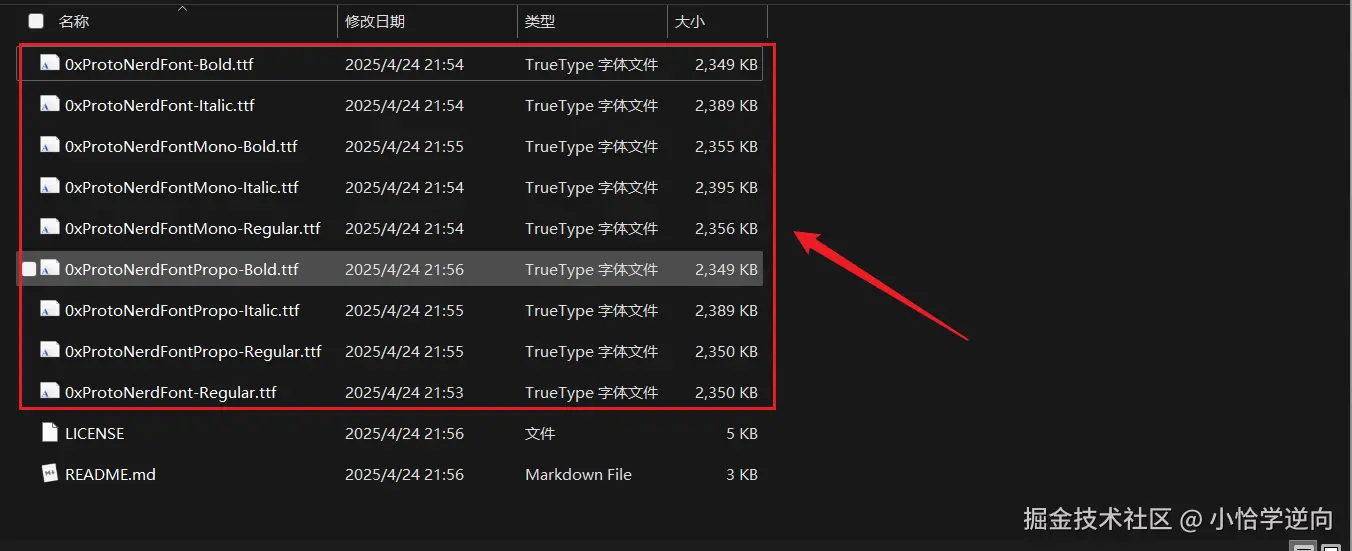 下载好之后将压缩包解压,就会得到几个字体安装包,一个个点进去安装即可