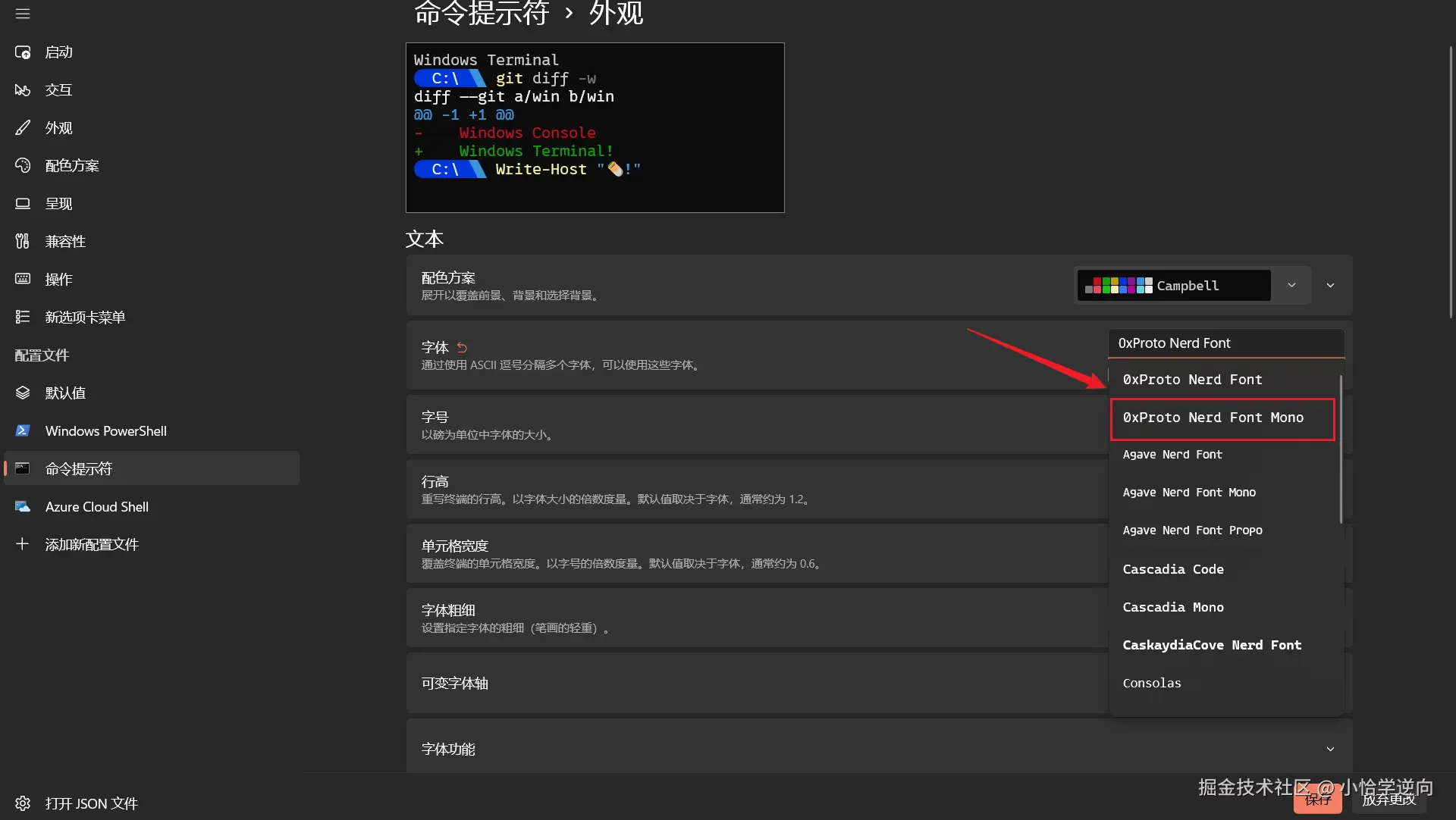 找到命令提示符下的外观设置,点入
