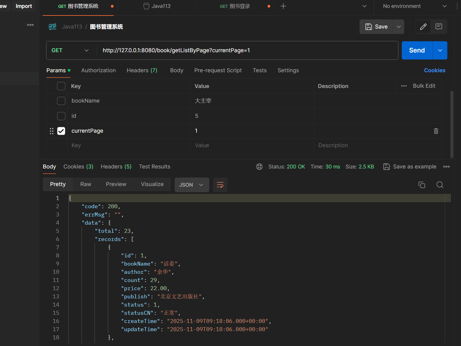 url:http://127.0.0.1:8080/book/getListByPage?currentPage=1