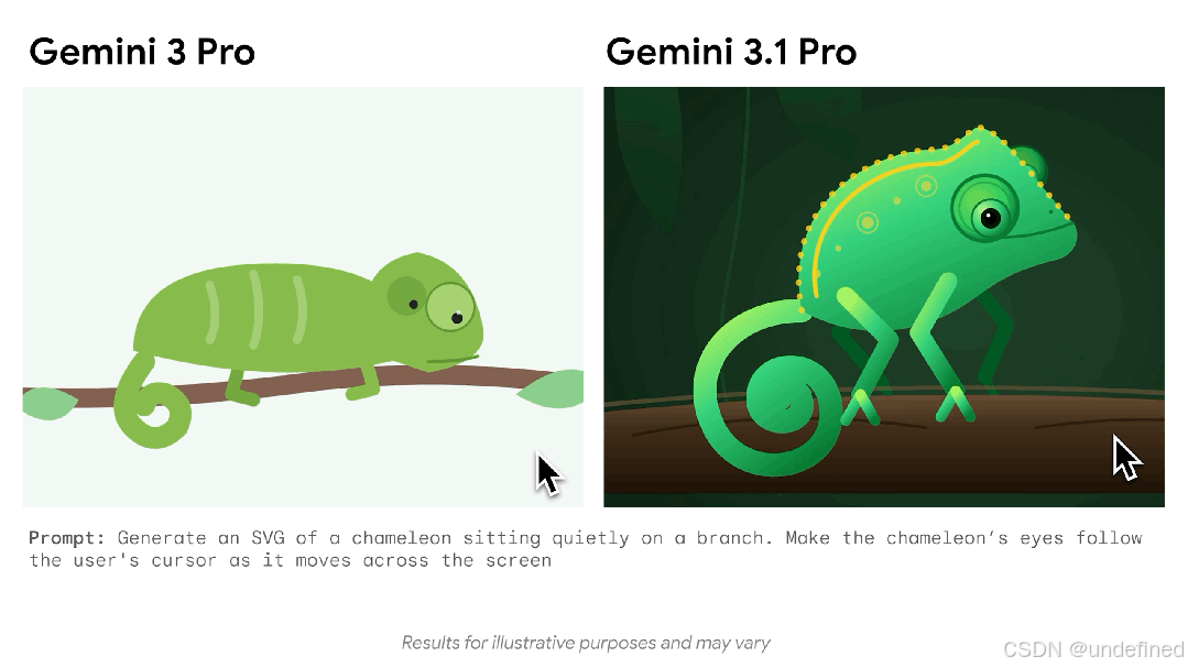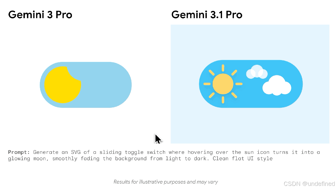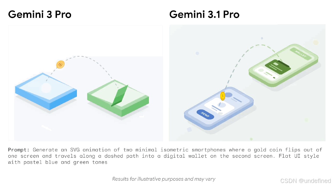 基于代码的动画:3.1 Pro 可以直接根据文本提示生成可用于网站的动画 SVG。由于这些动画完全由代码而非像素构成,因此无论缩放比例如何,它们都能保持清晰锐利,并且与传统视频相比,文件大小也极小。