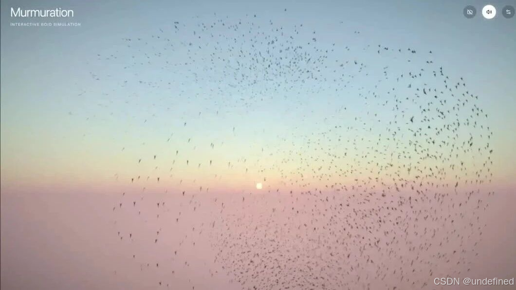 想象一下,一个复杂的 3D 椋鸟群舞动画,不再是静态的渲染图。3.1 Pro 做的可不止是生成视觉代码,它直接帮你搭好了一个沉浸式可交互的完整体验!
