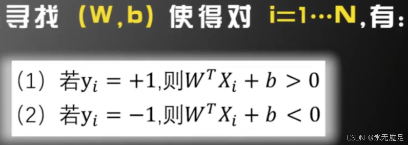 其上面的条件,实际就是表述数据集线性可分。