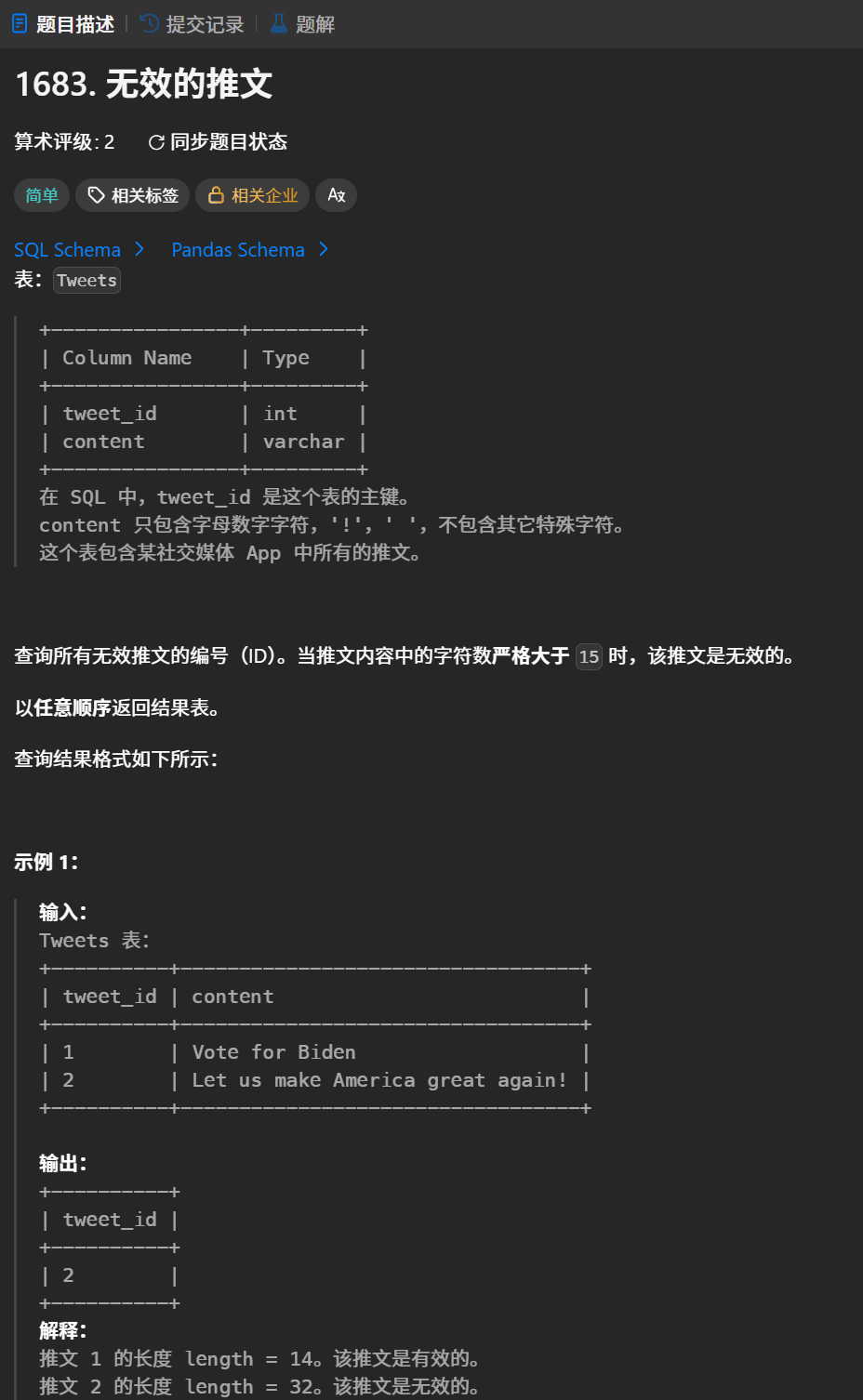 - [P1683. 无效的推文](#P1683. 无效的推文)