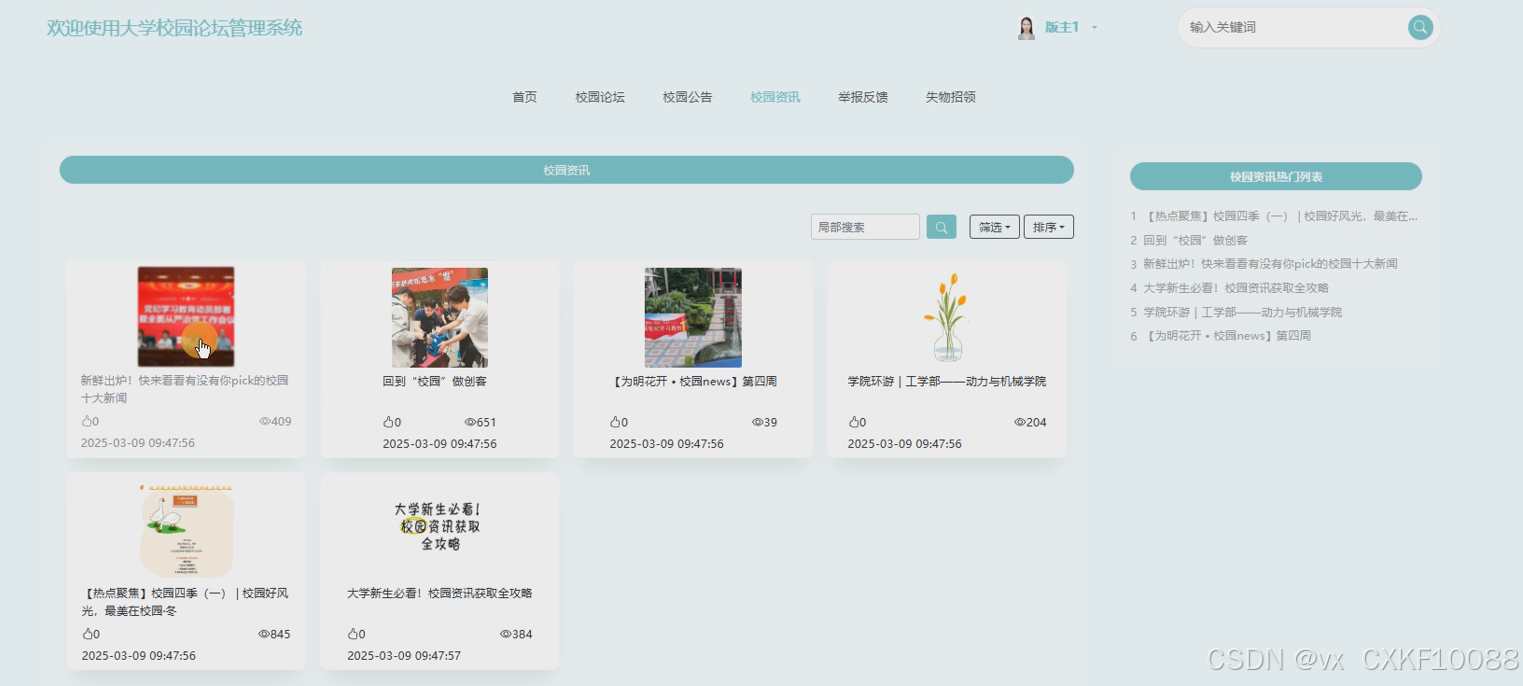 - 校园公告:版主可以发布和管理校园公告,确保重要通知及时传达给全体用户。
