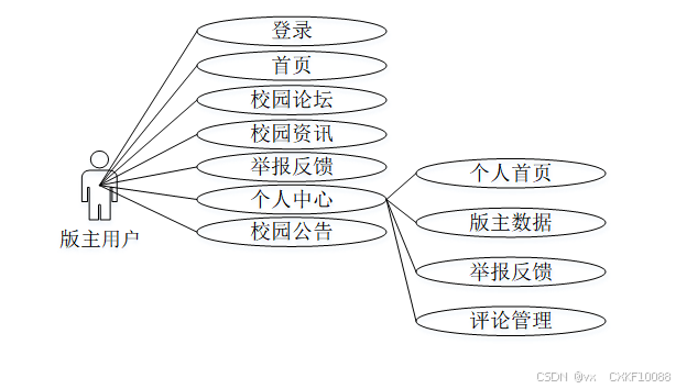 - 交流管理(校园论坛):管理员可以管理论坛分类、发布新的讨论话题、管理帖子及评论等。