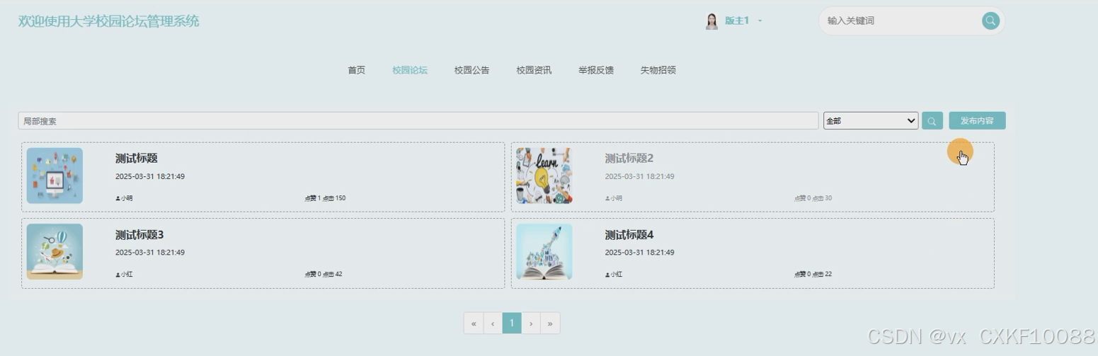 - 校园论坛:用户可以浏览帖子、发表新帖、参与评论、回复他人帖子等。