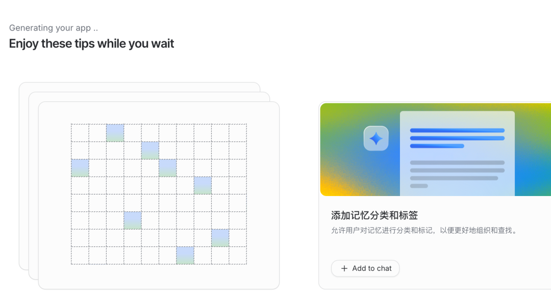 在生成过程提示可能的操作:Enjoy these tips while you wait